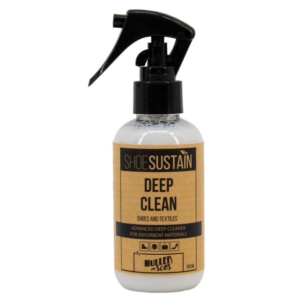 Ontdek de effectiviteit van Deep Clean, de ideale keuze voor het zacht reinigen van diverse oppervlakken. Deze mild schuimende oplossing is speciaal samengesteld om grondig te reinigen, waarbij het tot in de kern van de materialen doordringt om vuil en vlekken moeiteloos te verwijderen. Geschikt voor een breed scala aan toepassingen, van tassen en schoenen tot kleding en zelfs meubels en vloerbedekking. Deep Clean onderscheidt zich door zijn milieuvriendelijke karakter, met biologisch afbreekbare ingrediënten en een formule die veilig is voor zowel uw artikelen als het milieu.